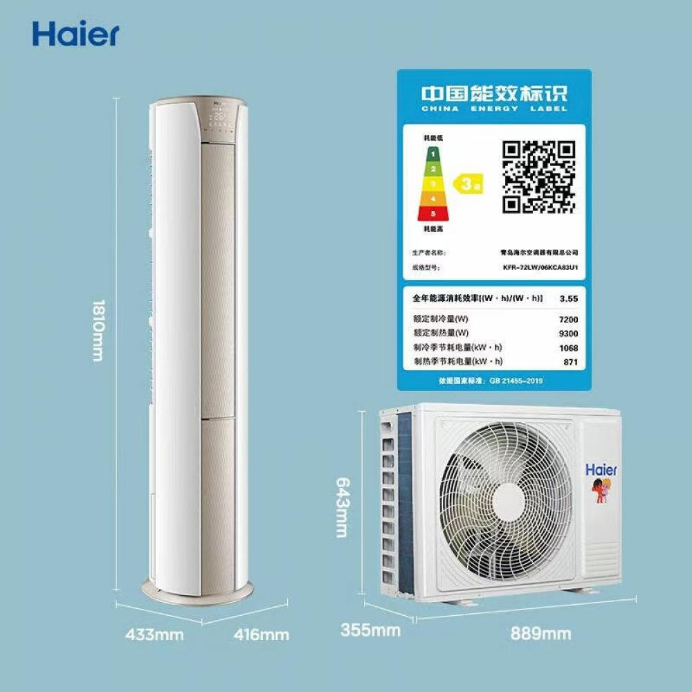 海尔5匹 二级能效 变频冷暖 立柜式空调380V 中央空调商用KFRd-120LW5YAF82 5匹 二级能效 KFRd-120LW5YAF82