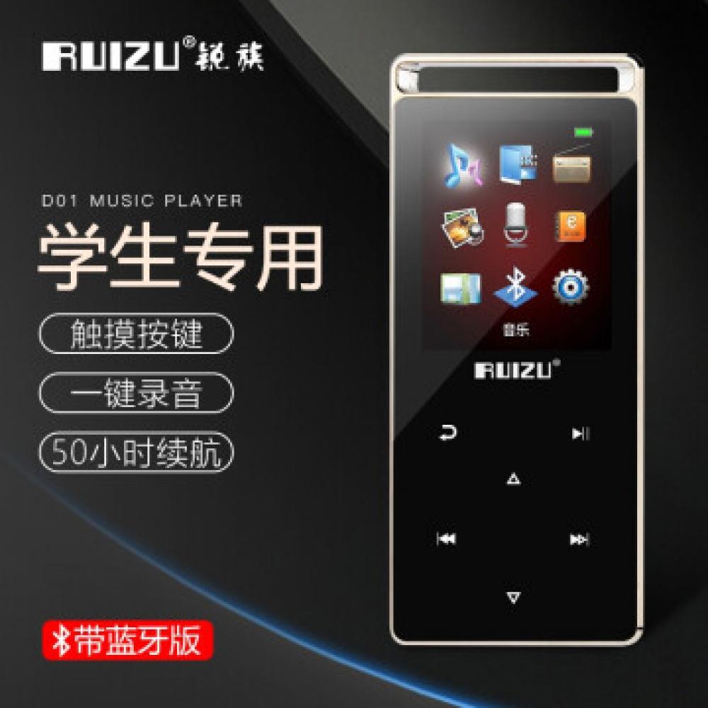 锐族(RUIZU) D01蓝牙mp3触屏mp4音乐播放器 学生版随身听女生小巧迷你便携式插卡P4外放 4G 魅力黑+收纳袋+OTG下载器 官方标配