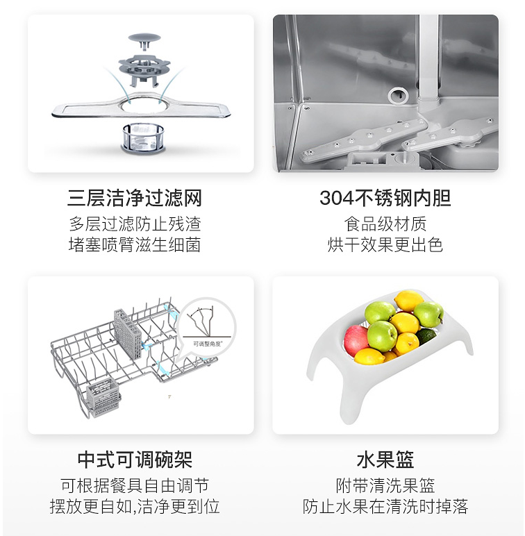 产品颜色:香槟金;款式:台式;外壳材质:钢化玻璃;控制方式:电子式;开合方式:顶开式;洗涤方式:喷淋式;干燥方式:余温自然干燥;消毒方式:高温消毒;餐具容量:6;耗水量(L):4.8-8;功率(W):920;净重(kg):17;外形尺寸(宽*高*深)mm:485*475*390;洗涤程序:强力洗、骨瓷洗、速洗、冲洗、果蔬