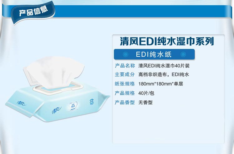 当前位置: 首页 > 办公耗材 > 清洁用品 > 卫生用纸制品 > 清风 湿巾 BWB40C 纯水湿巾40片