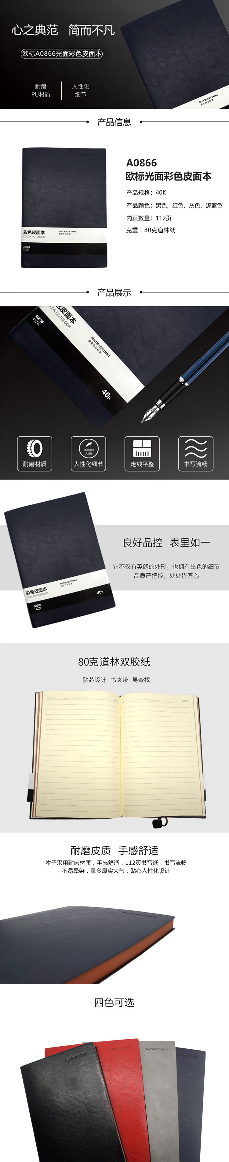 欧标 皮面本 A0866 光面彩色皮面本 黑色