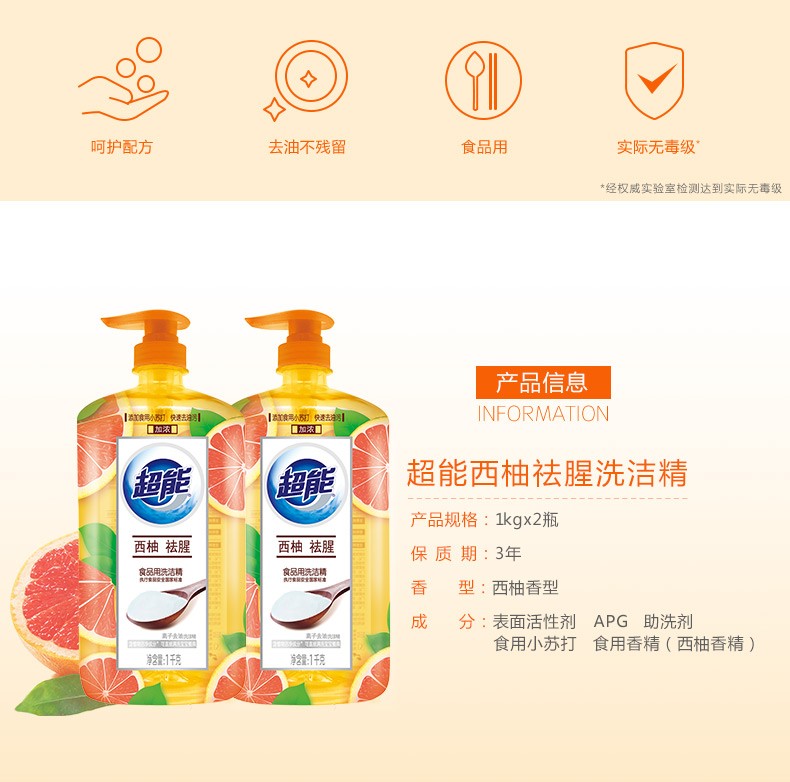 纳爱斯洗洁精 1kg超能离子去油洗洁精(西柚祛腥)