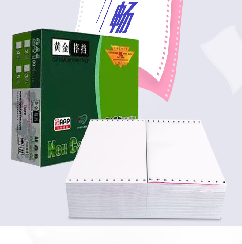 品牌:黄金搭档(OPTIMUM PARTNER);商品名称:APP黄金搭档电脑打印纸 彩色针式打印纸一二三四五联二三等分241撕边1000页 三联二等分;商品毛重:3.5kg