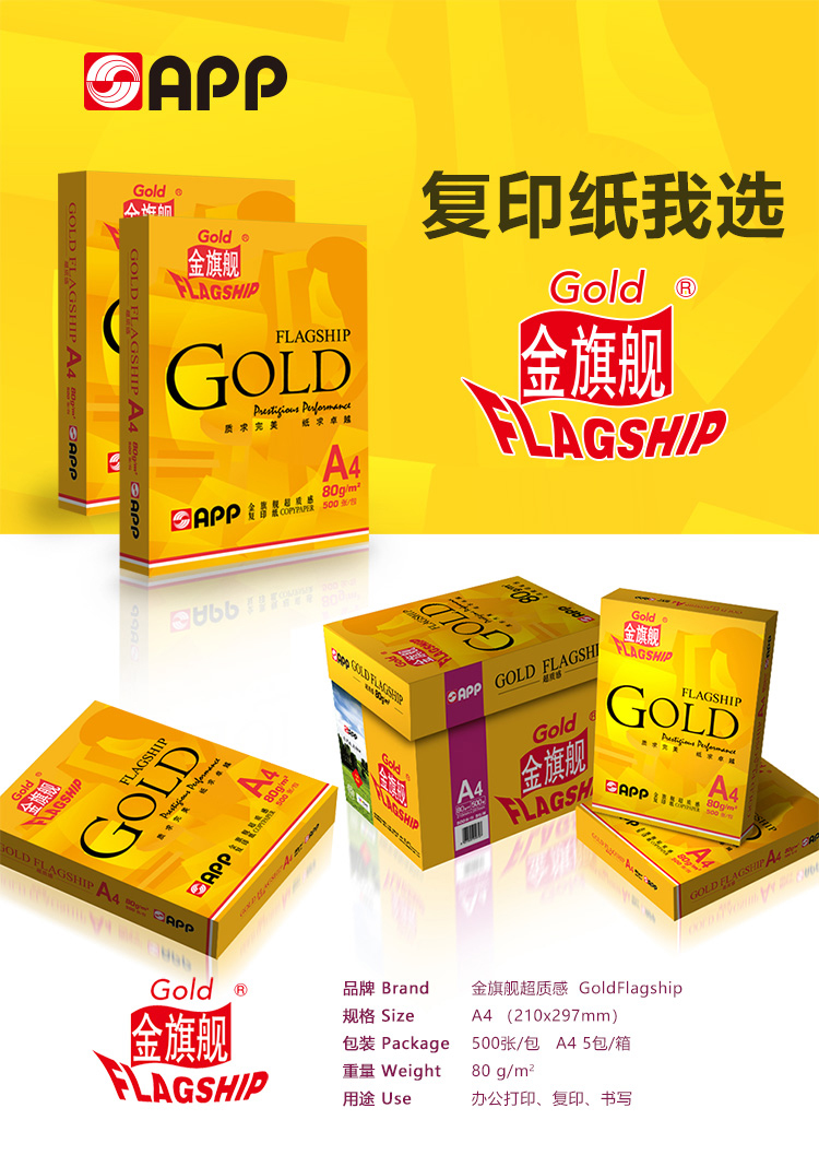 金旗舰 A4复印纸 80g 500/包 5包/箱(单位:包)