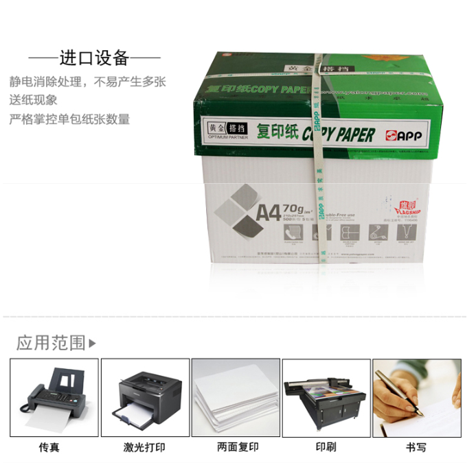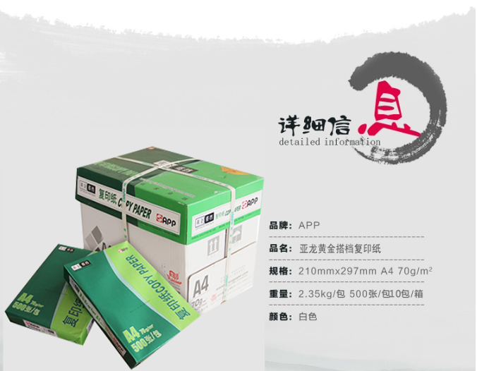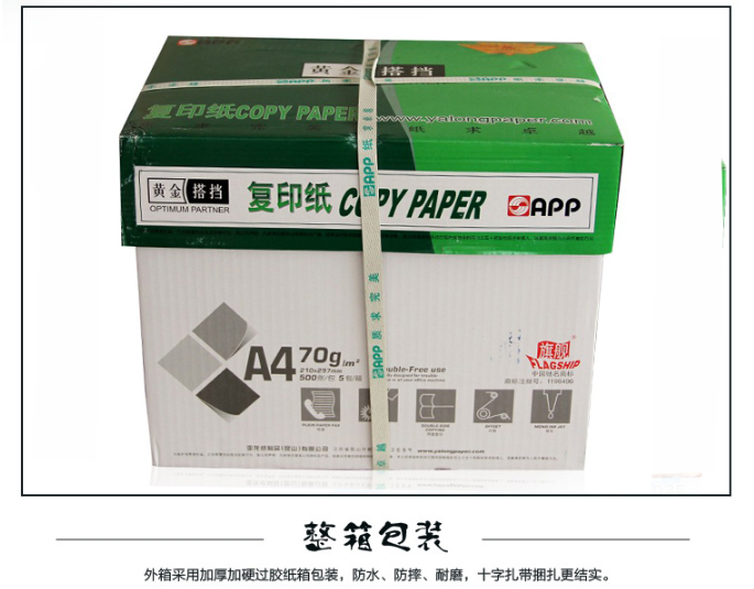 当前位置: 首页 > 办公耗材 > 纸制文具及办公用品 > 复印纸 > 黄金搭档A4复印纸 70g 500/包 8包/箱