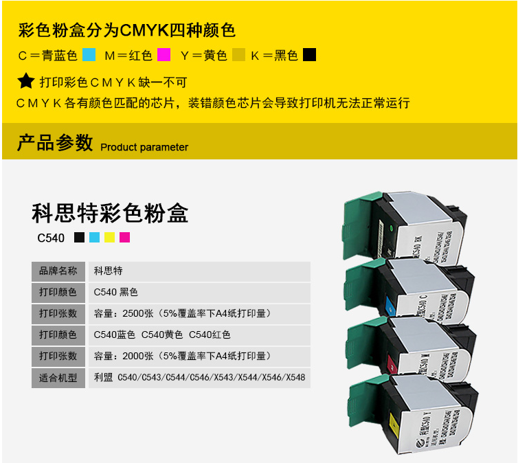 品牌:科思特;型号:K C540(粉筒);颜色:黑色;打印量:2500;适用机型:Lexmark C540/C543/C544/C546/X543/X544/X546/ X548;包装清单:粉筒*1