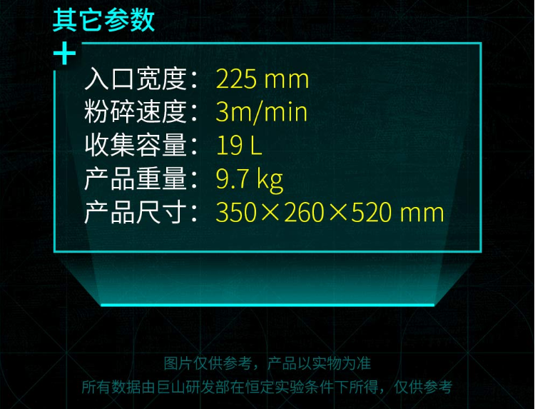 品牌:其他; 型号:E310D; 颜色:白色; 碎纸宽度:225mm; 功率:300W; 产品尺寸(mm):350×260×520mm; 产品净重(kg):9.7kg