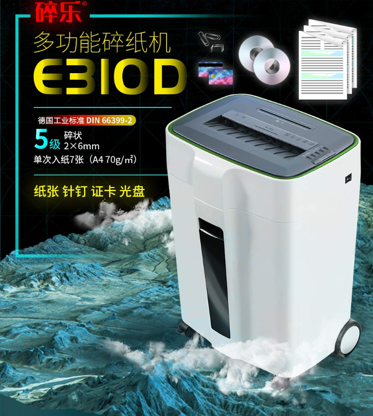 碎乐5级保密小型办公碎纸机多功能碎纸机 E310D 2*6mm