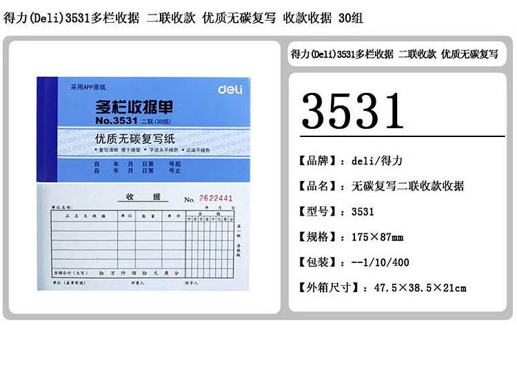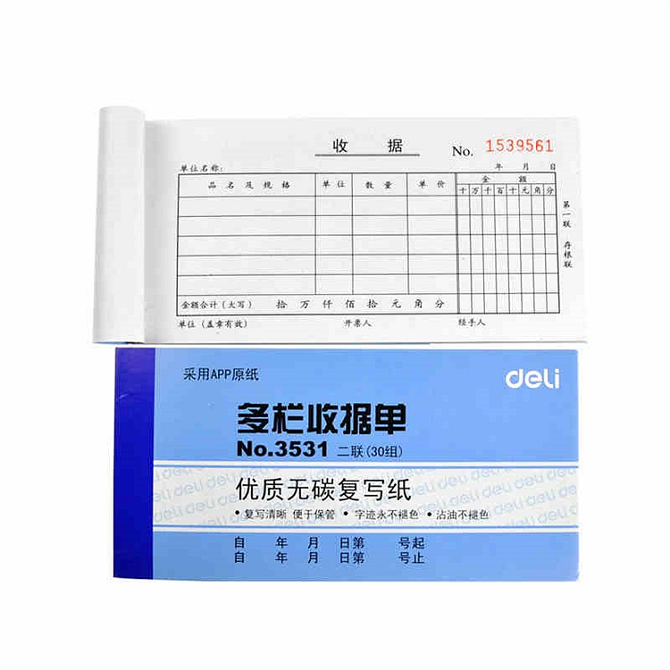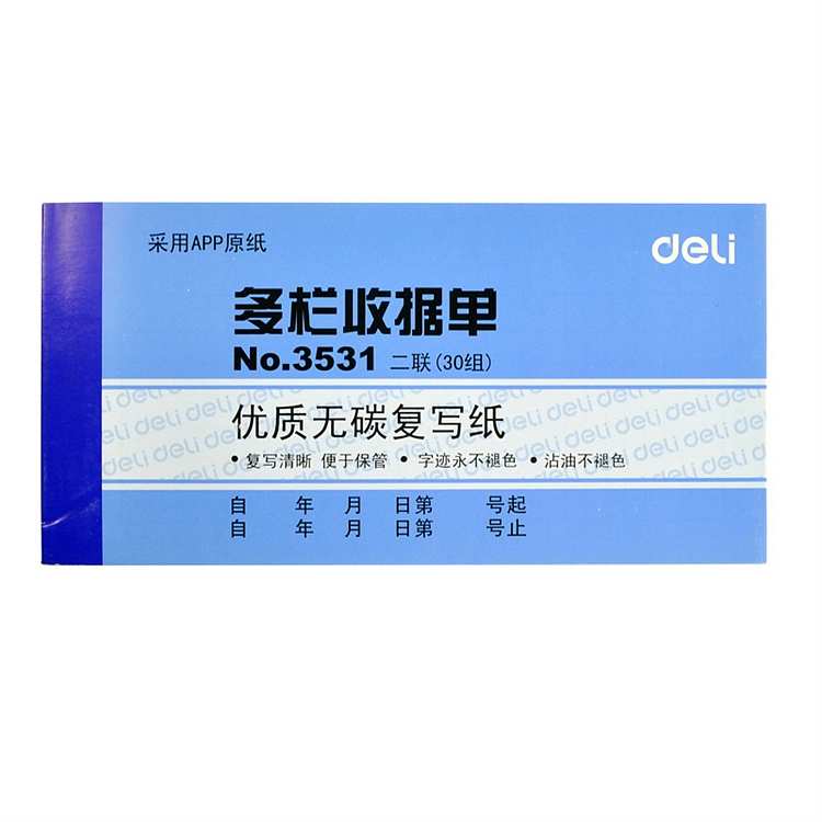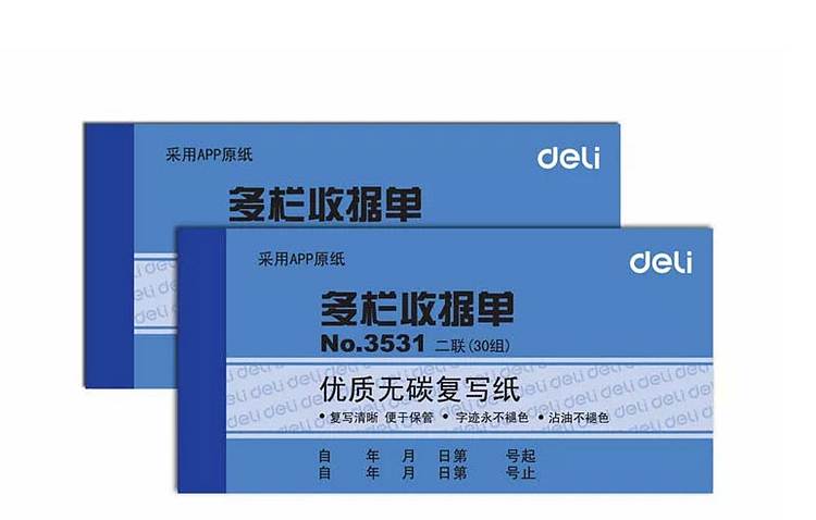 得力3531无碳复写单据(蓝)87*175mm(本)