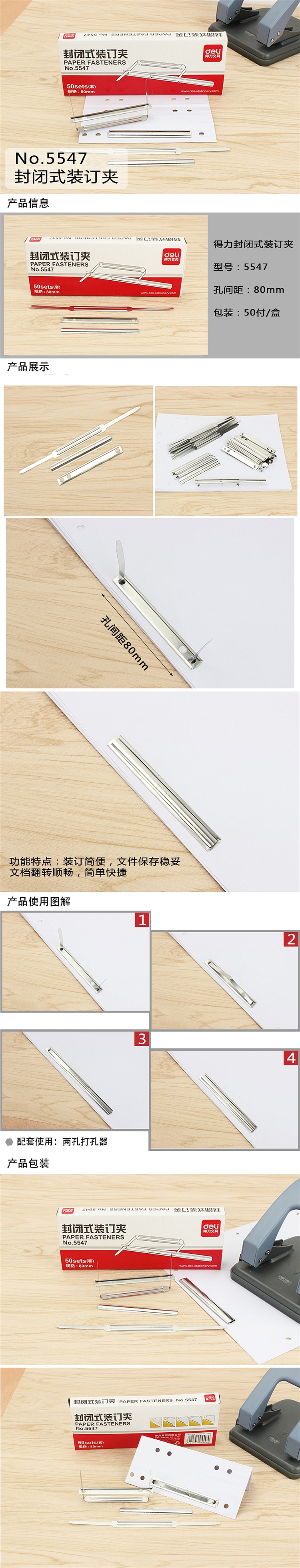 当前位置: 首页 > 办公耗材 > 文教用品 > 文具 > 得力5547封闭式装订夹(银色)(50套/盒)