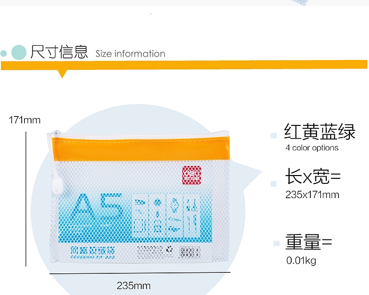 得力5832网格拉链袋(混)(只)