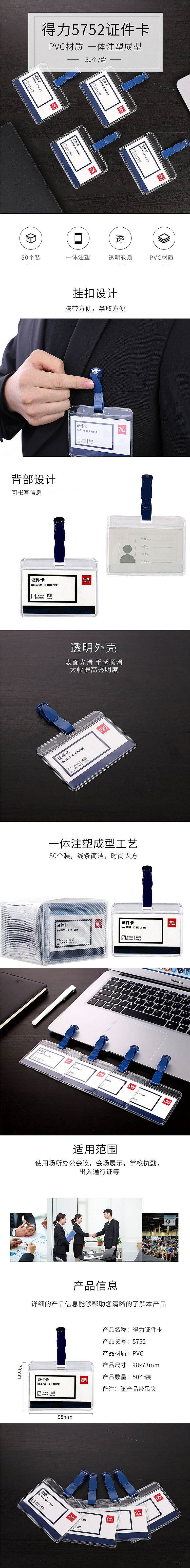 当前位置: 首页 > 办公耗材 > 文教用品 > 文具 > 得力5752证件卡(蓝)(50只/盒)