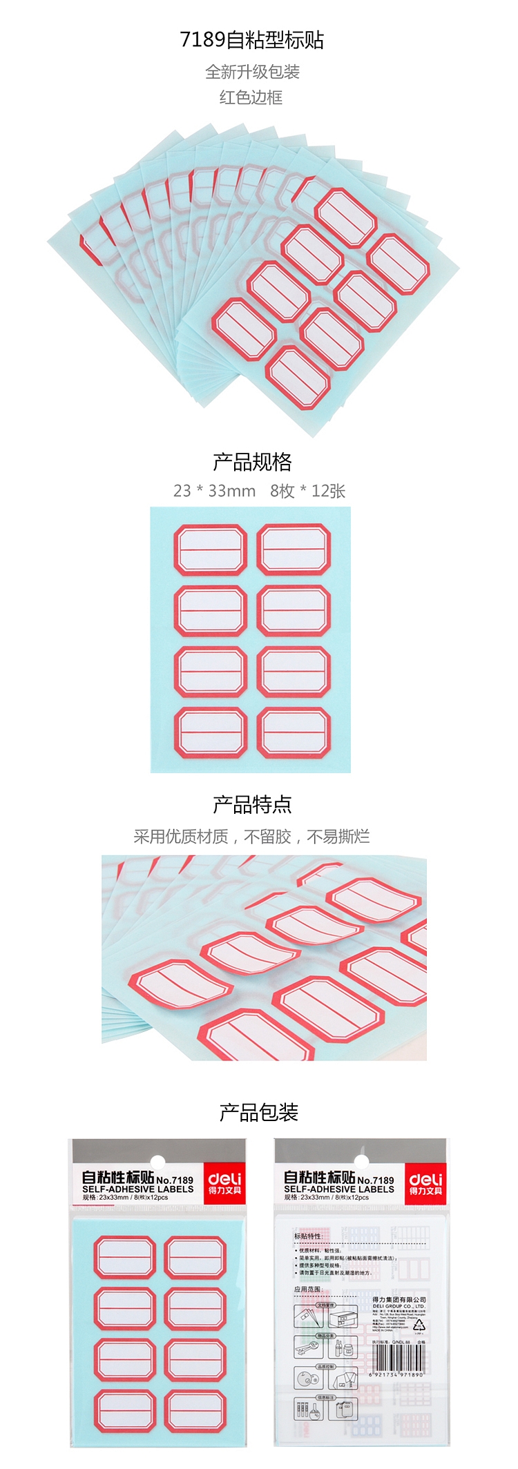 当前位置: 首页 > 办公耗材 > 文教用品 > 文具 > 得力7189自粘性标贴(白)23*33mm(本)