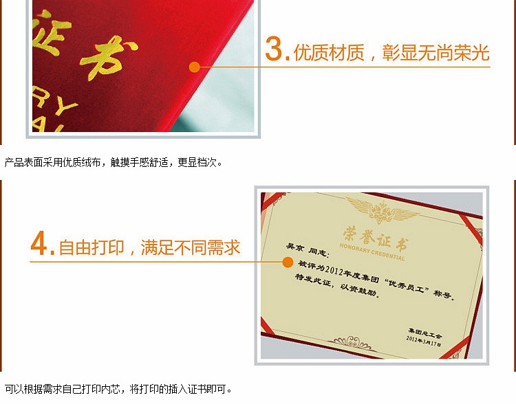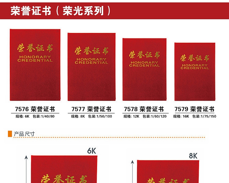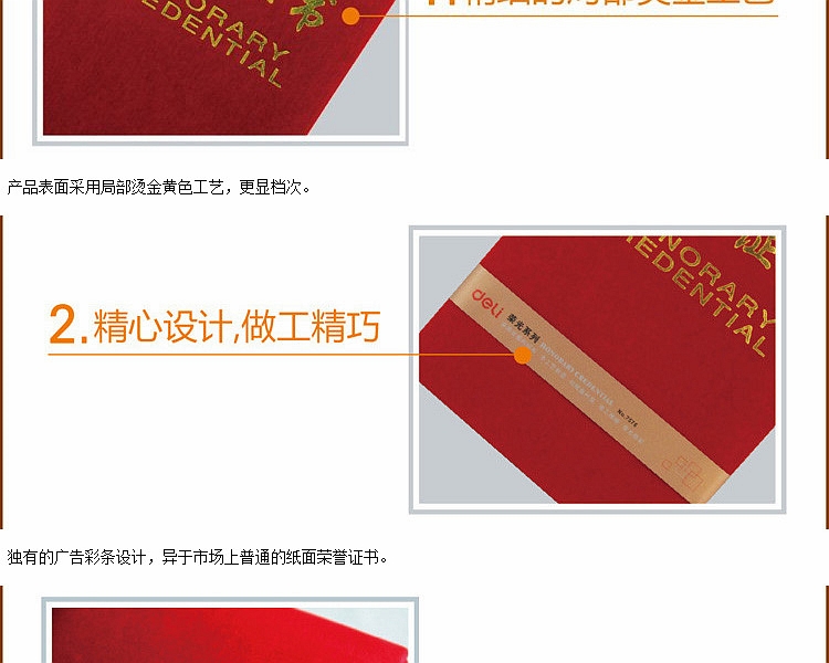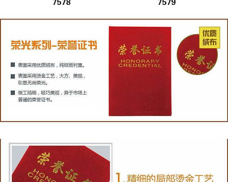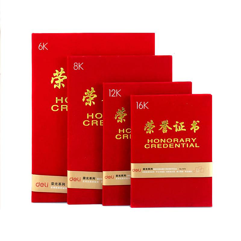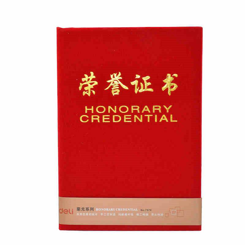 得力7579荣誉证书(荣光)(红)-16K(本)