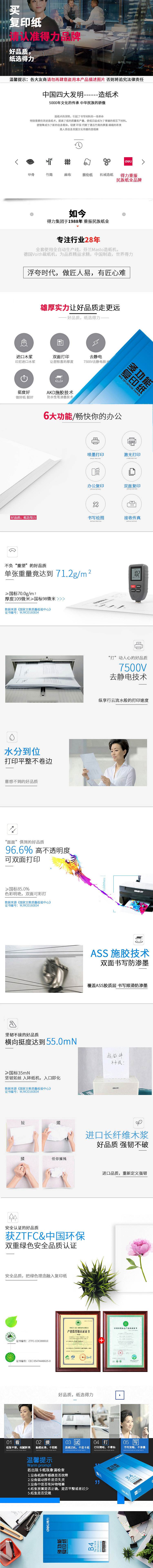 产品规格:70g/B4/500张/包; 外箱尺寸:39x27x19cm; 包装数量:1/-/4