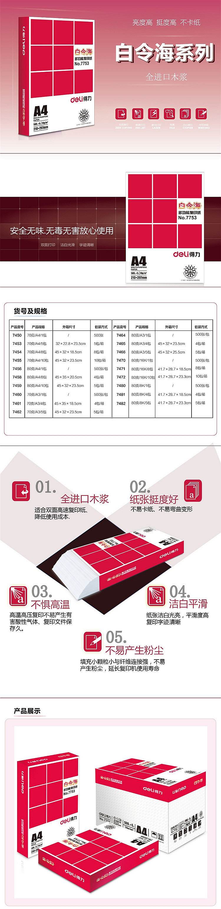 得力7753白令海复印纸(A4-70g-5包)(包)