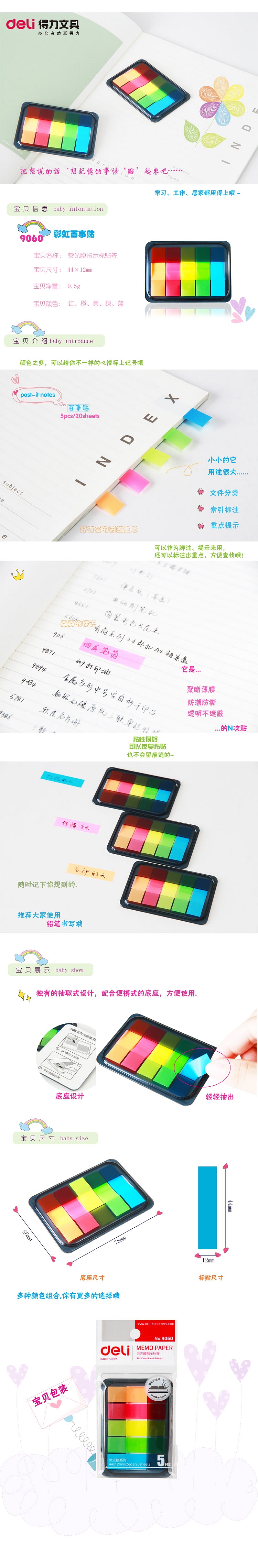 当前位置: 首页 > 办公耗材 > 文教用品 > 文具 > 得力9060指示标签12*44mm(混)(袋)