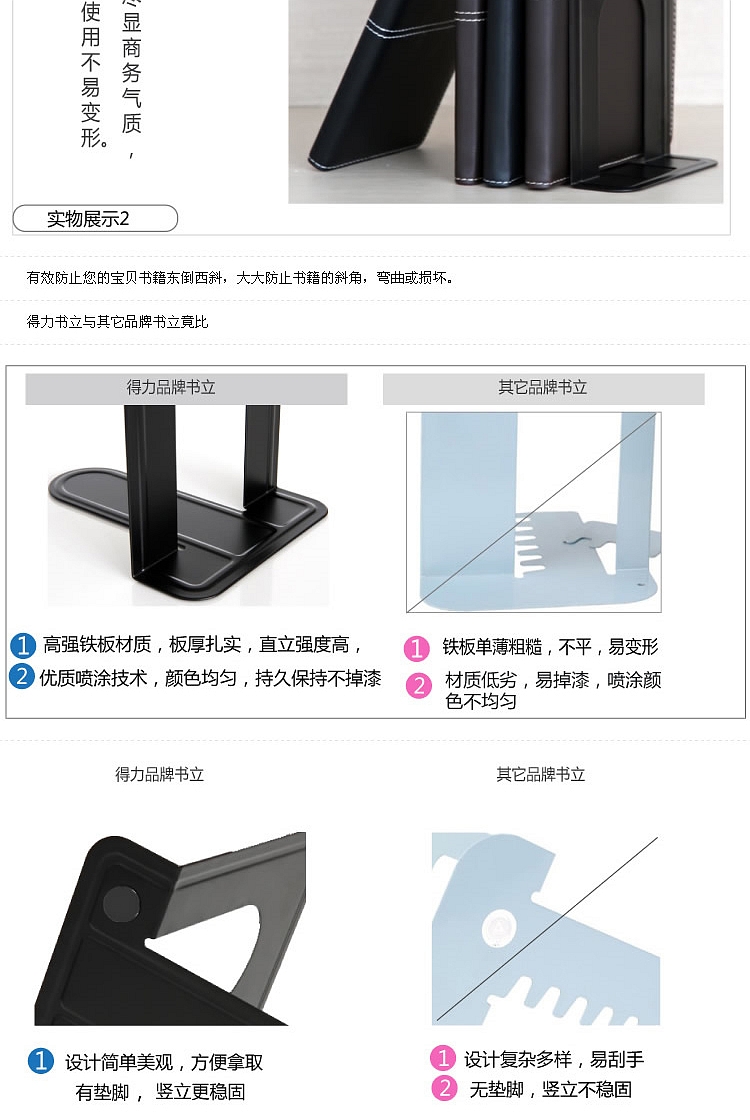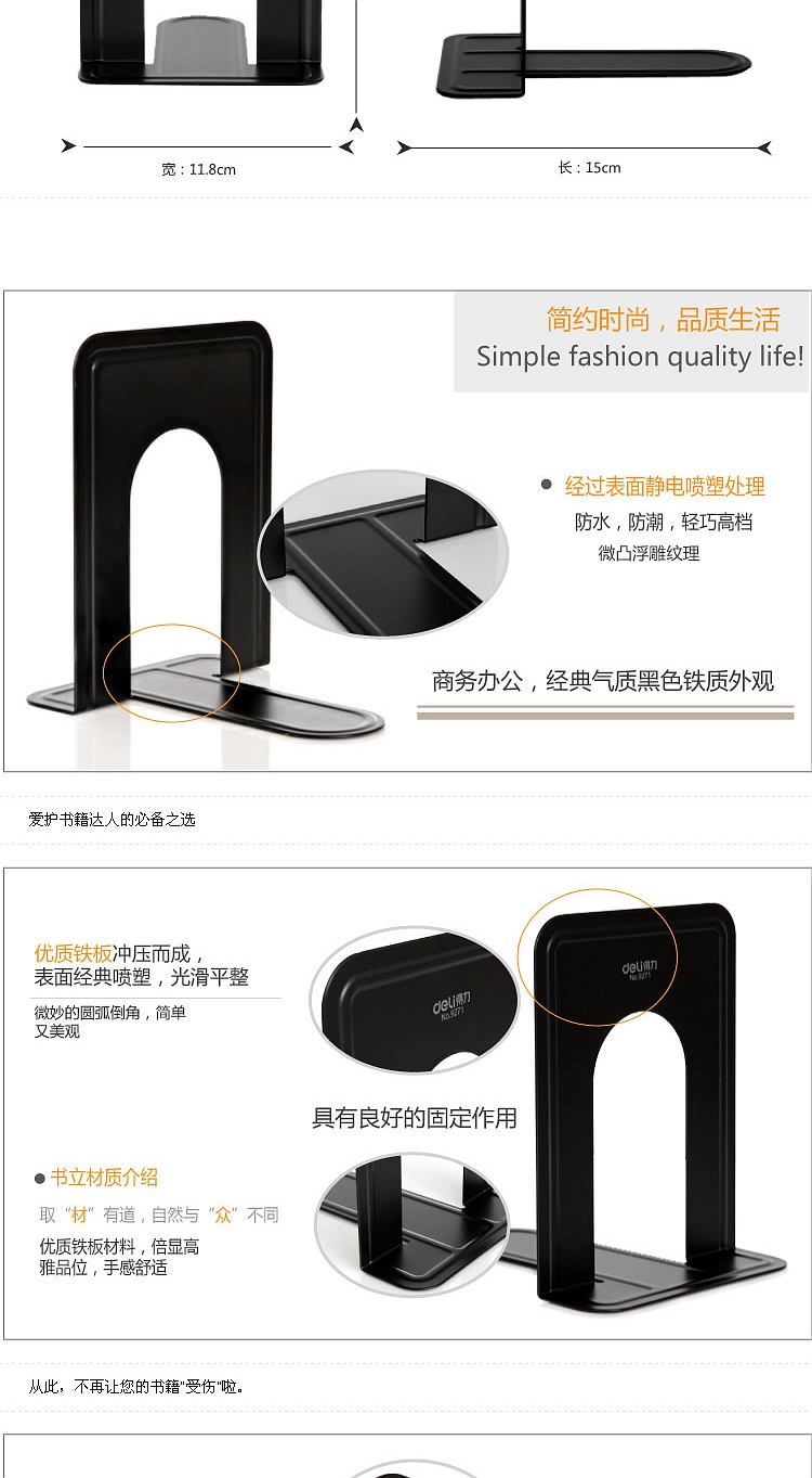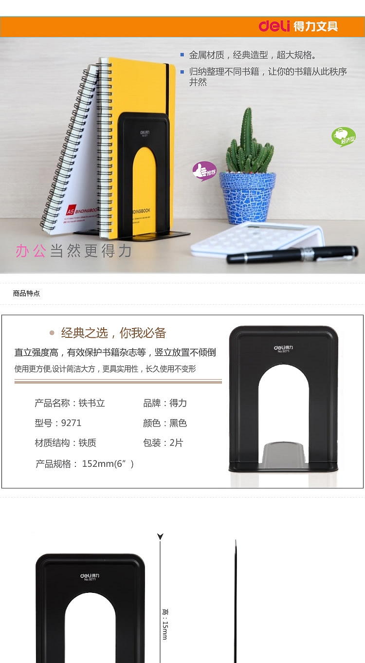 当前位置: 首页 > 办公耗材 > 文教用品 > 文具 > 得力9271铁书立-6"(黑)(2片/付)