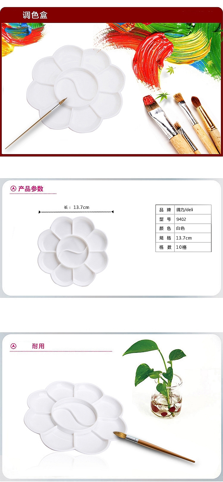 得力优酷9402调色碟(白)(只)