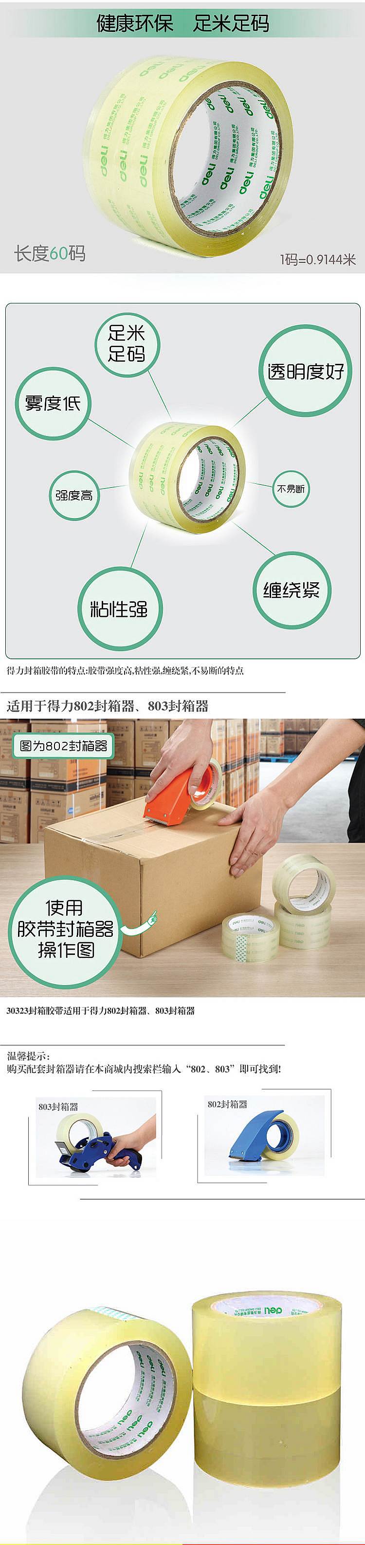 品牌:得力; 型号:30283; 商品标题:得力 30283 封箱胶带 55mmx100y (单位:筒); 销售单位:筒