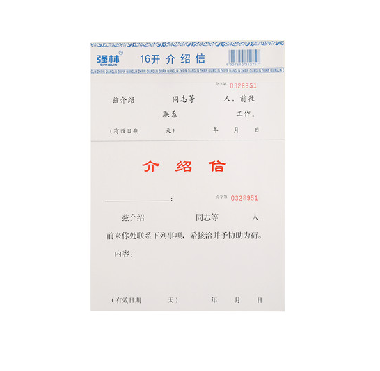当前位置: 首页 > 办公耗材 > 纸制文具及办公用品 > 信纸 > 强林介绍信16K 联系工作单位推介信举荐信 办公文具 50张/本