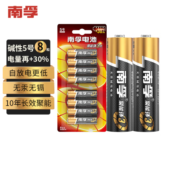南孚 LR6-2B 5号电池 五号碱性干电池 聚能环3代 适用鼠标键盘遥控器血压计挂钟等 2粒/卡 20卡装【共40粒】