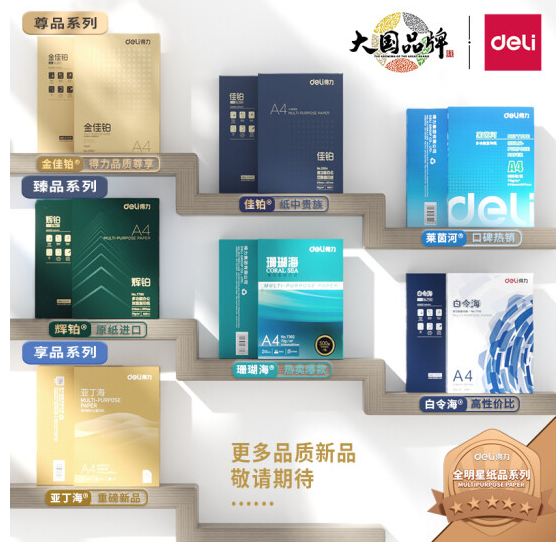 当前位置: 首页 > 办公耗材 > 纸制文具及办公用品 > 复印纸 > 得力(deli)辉铂A4打印纸 70g克500张*8包一箱 进口原纸复印纸 双面草稿纸 整箱4000张 7784标签