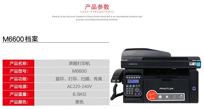商品名称 奔图(PANTUM)M6600 黑白激光商用多功能一体机 M6600 USB直连多功能一体机