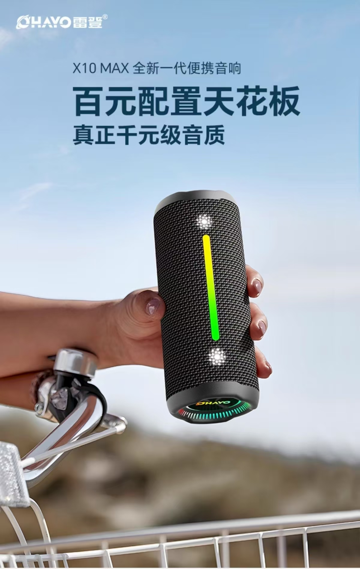 当前位置: 首页 > 办公自动化设备 > 办公设备 > 音箱/音响 > 雷登 OHAYO蓝牙音箱25年新款X10MAX高音质35W大音量炫彩灯效震撼低音炮骑行便携防水音响 X10MAX 魅惑黑【全新顶配版】