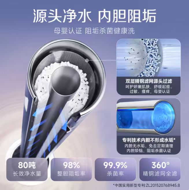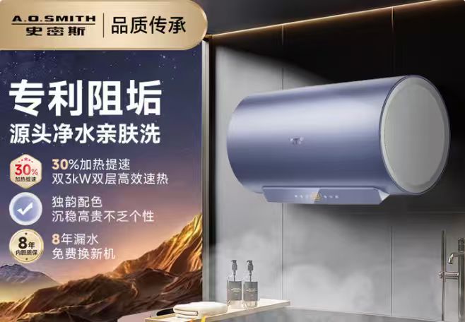 史密斯(A.O.SMITH)国家补贴20%佳尼特电热水器60升专利免清洗双棒双3kW速热便携遥控节能家用洗澡一级能效JC2 80L 3000W 大水量 源头净水亲肤