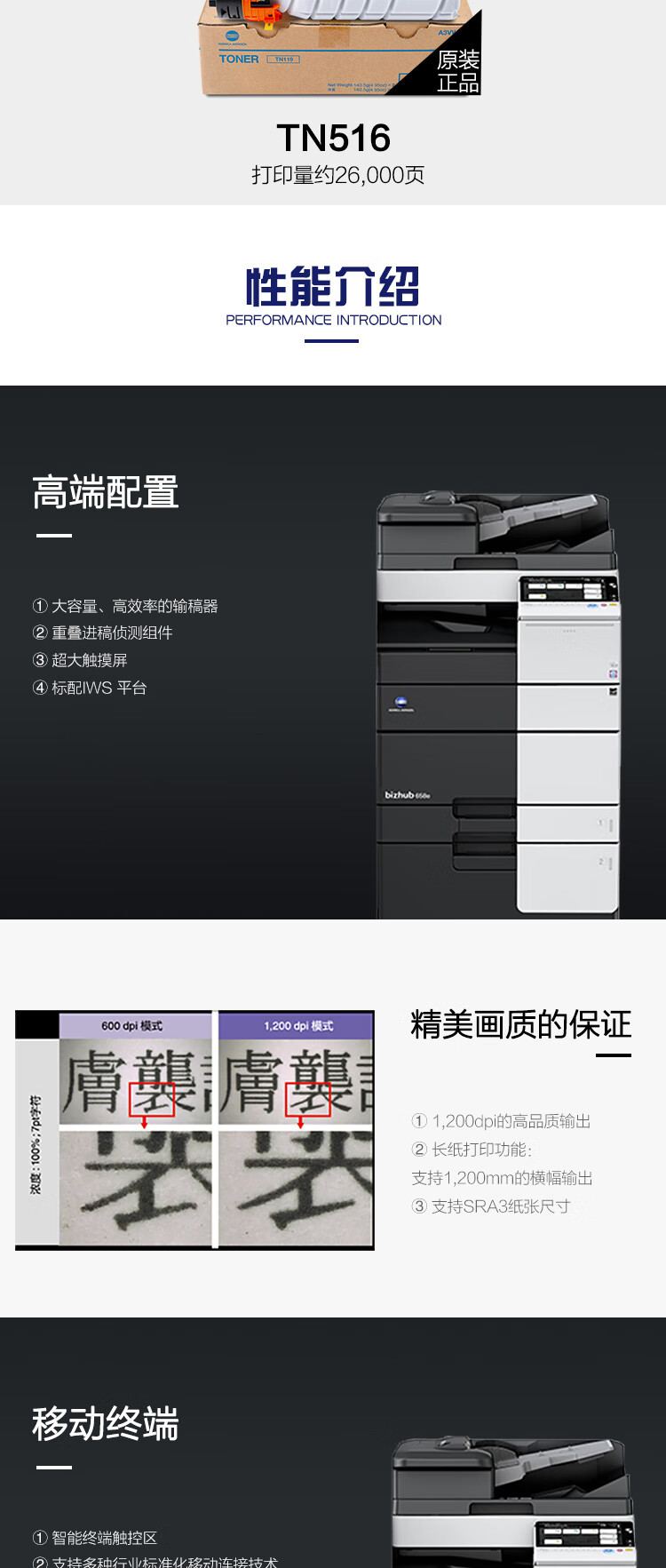 品牌:柯尼卡美能达(KonicaMinolta);颜色:黑色;型号:bizhub658e;认证型号:bizhub658e;类别:数码复印机