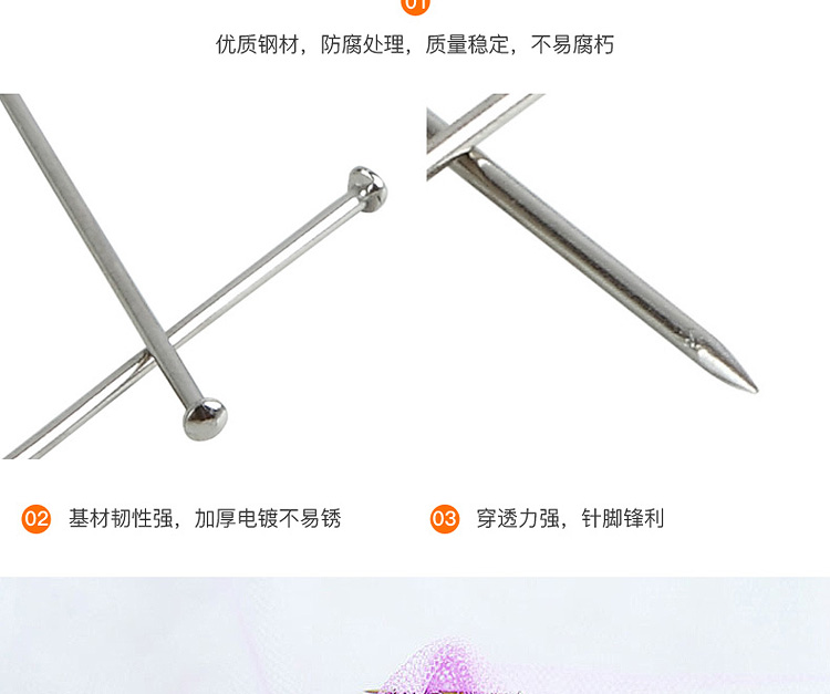 欧标大头针 金属色 26mm 50G/盒 B2602