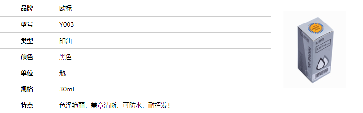 品牌:MATE-1ST/欧标;所属分类:印油/印泥;颜色:黑色;规格:30ml;型号:Y003;类型:印油;包装规格:1瓶
