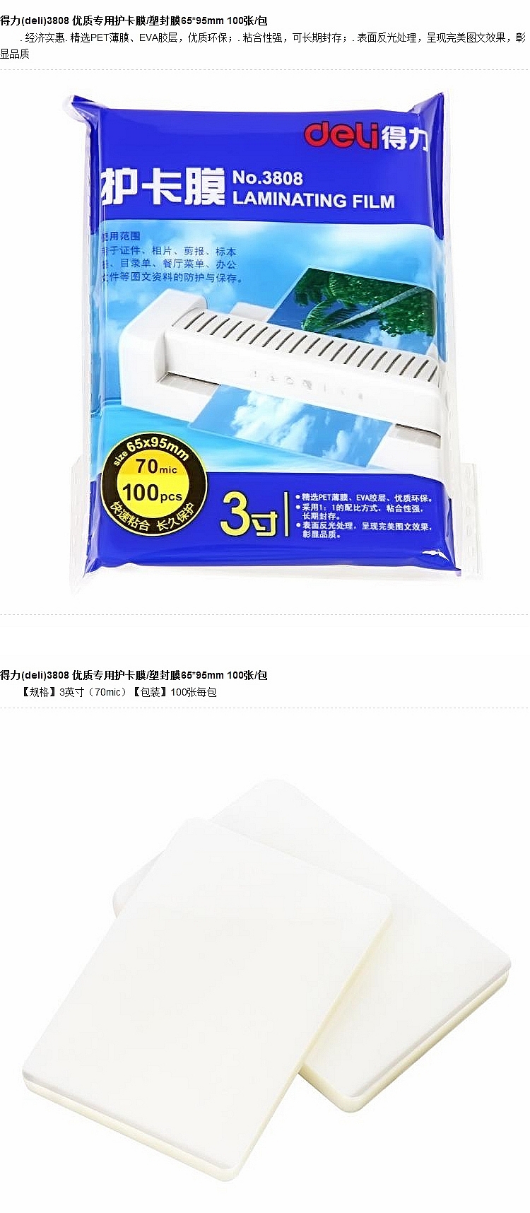 当前位置: 首页 > 办公耗材 > 文教用品 > 文具 > 得力3808护卡膜(透明)(100片/包)