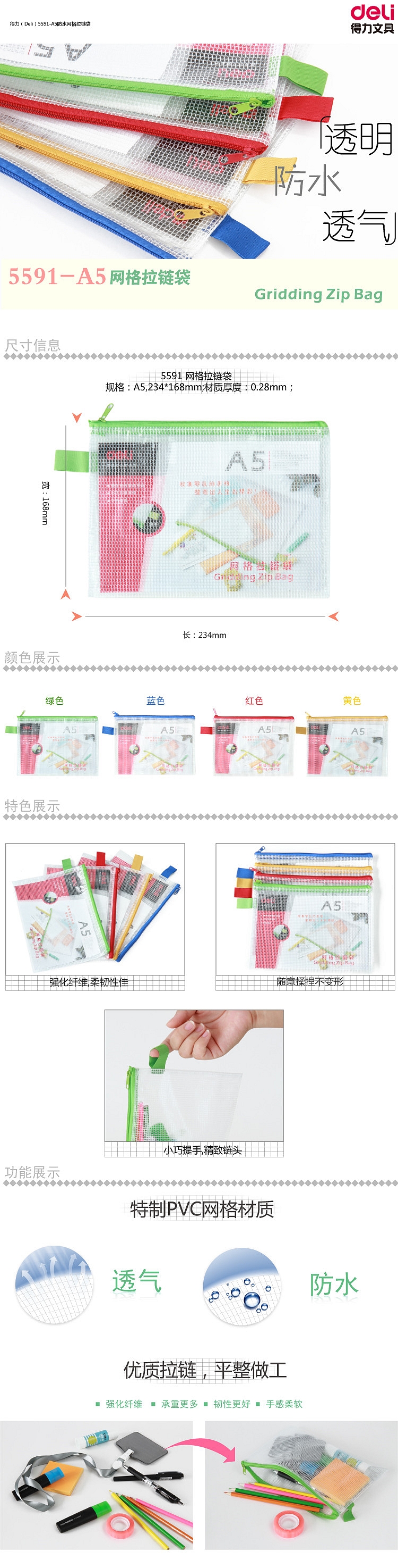 当前位置: 首页 > 办公耗材 > 文教用品 > 文具 > 得力5591网格拉链袋(混)(只)