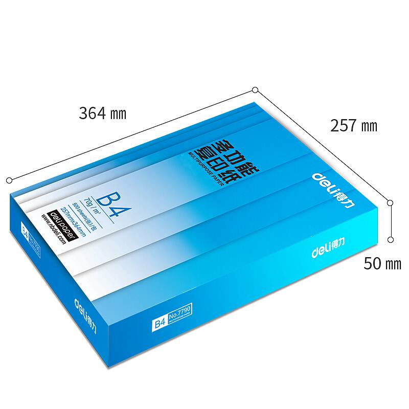 产品规格:70g/B4/500张/包; 外箱尺寸:39x27x19cm; 包装数量:1/-/4