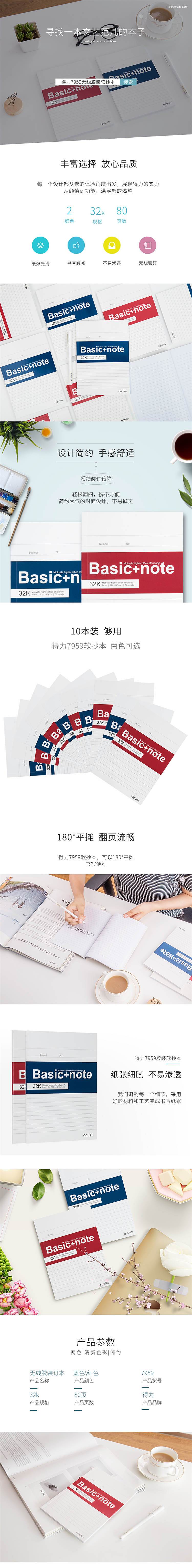 得力7959办公胶装本(混)-80张-32K(本)