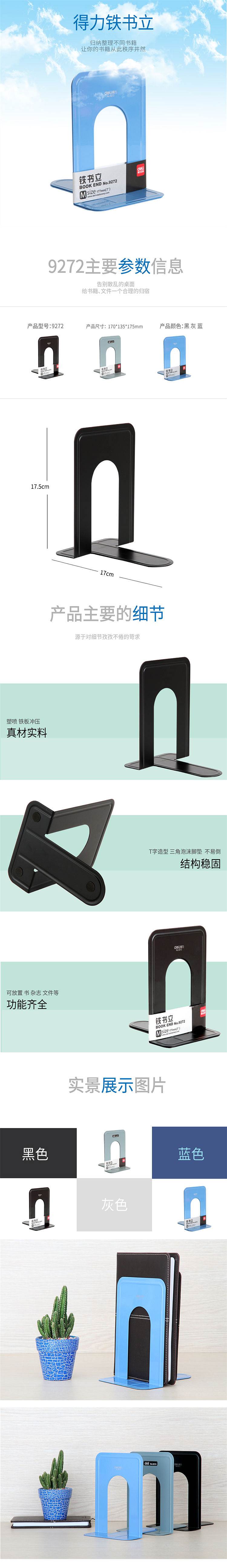 得力9272铁书立-7"(蓝)(2片/付)