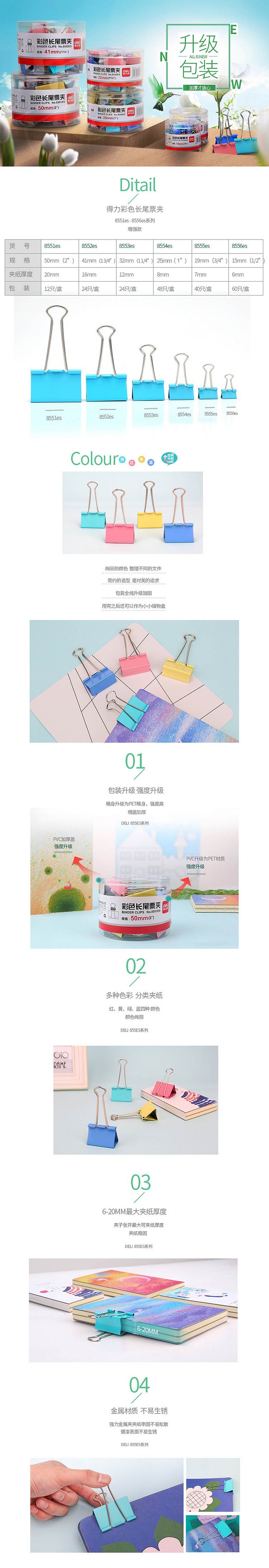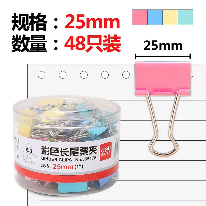 得力8554ES彩色长尾票夹筒装(混)(48只/筒)
