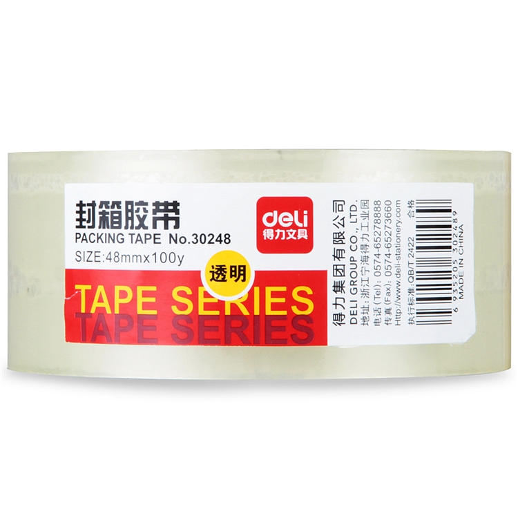 得力30248超市封箱胶带(透明)48mm*100y*50um(卷)
