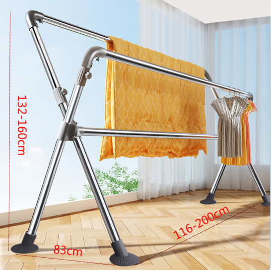 瑶颖 折叠晾衣架落地晒衣架阳台不锈钢晒衣杆折叠伸缩双杆简易晾衣架家用室内外晒被子架YYL01 稳固大地脚款-1.16-2.0米-可伸缩调高